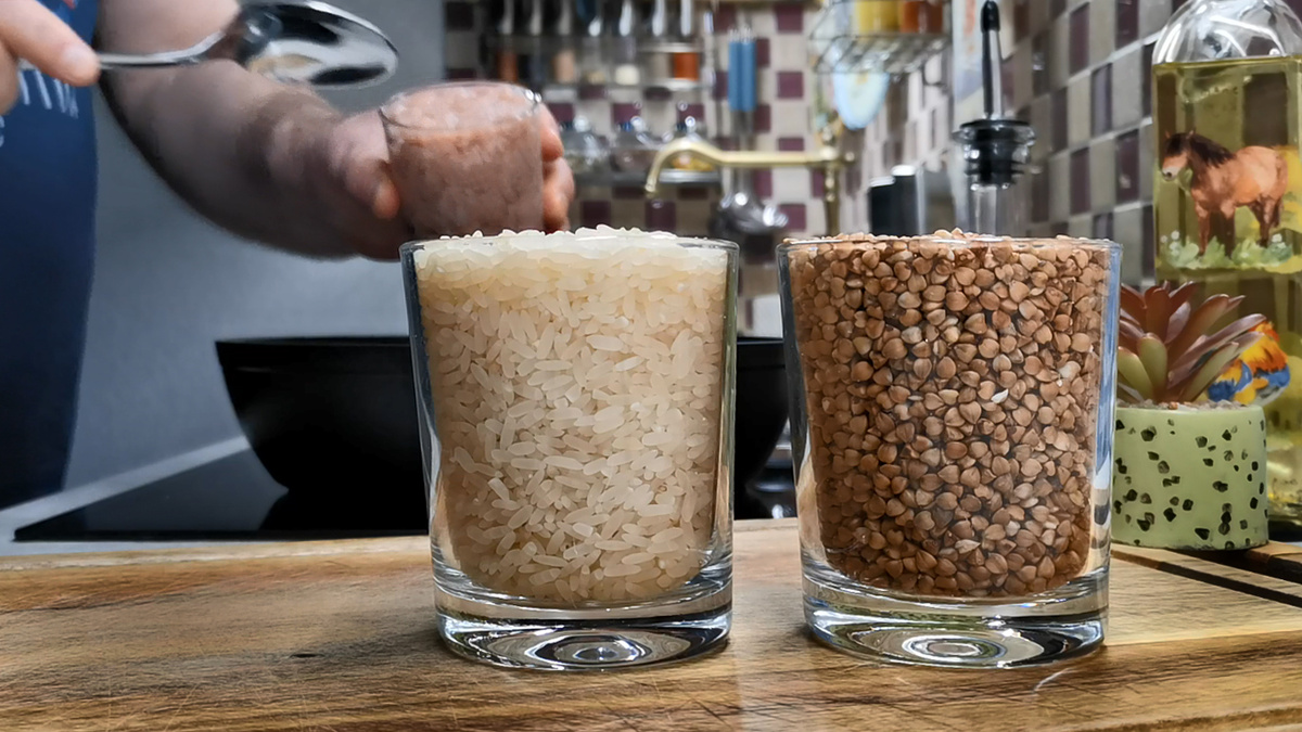 Подготовка к приготовлению проста. Крупы следует взять в равных пропорциях, отмеряя на глаз – достаточно и простого стакана. Дополнить блюдо стоит свежей морковью и репчатым луком, нарезая их соответственно соломкой и полукольцами. Эти ингредиенты обжариваются на хорошо разогретой сковороде с растительным маслом, что придаст блюду особую ароматику.