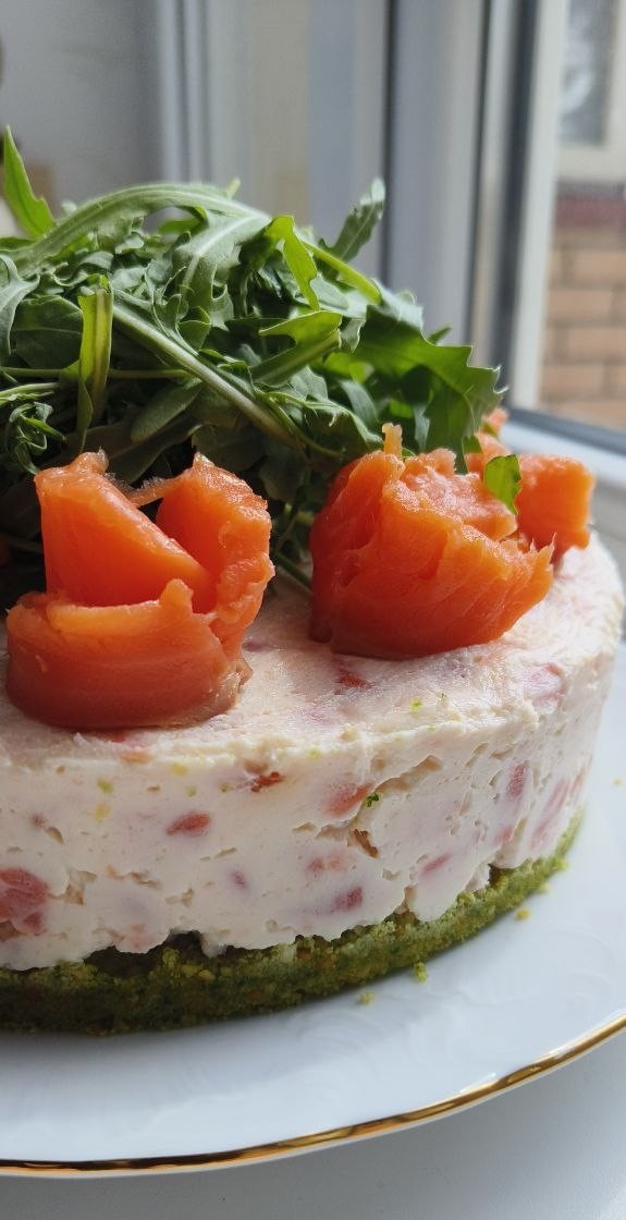 Не забывайте о секретах: для легкой нарезки лосося он должен быть слегка подморожен. Этот чизкейк прекрасно дополнит хрустящий багет или крекеры.