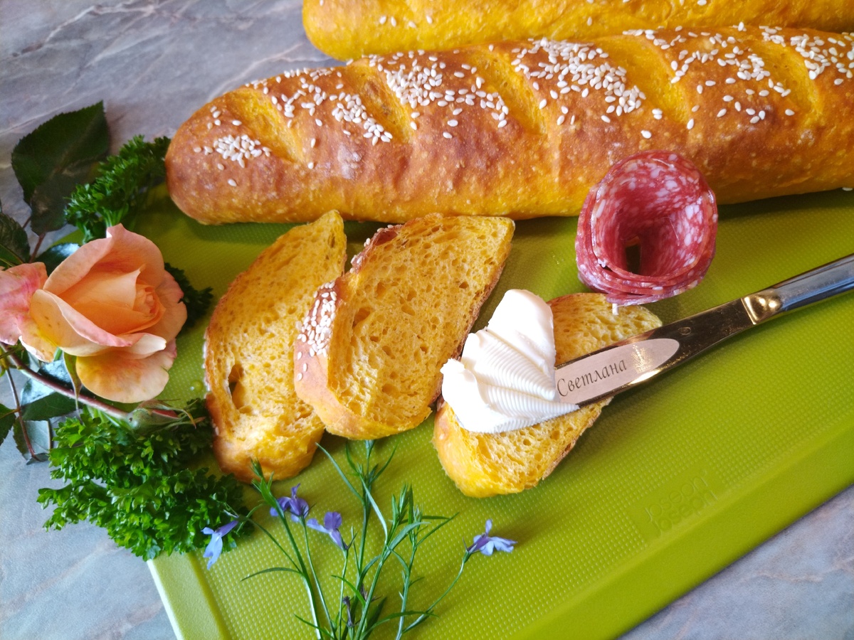 На выходе получаются яркие, солнечные и аппетитные багеты, которые можно остудить на решетке. Они приятно ароматные и удобны для тех, кто не является поклонником тыквы — её вкус станет незаметным, что принесет удовольствие даже самым требовательным гурманам.