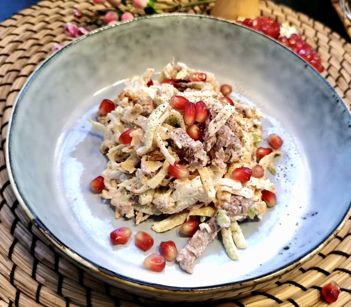 Салат «Ташкент» — это яркое сочетание текстур и вкусов, которое запомнится всем вашим гостям. Приятного аппетита!