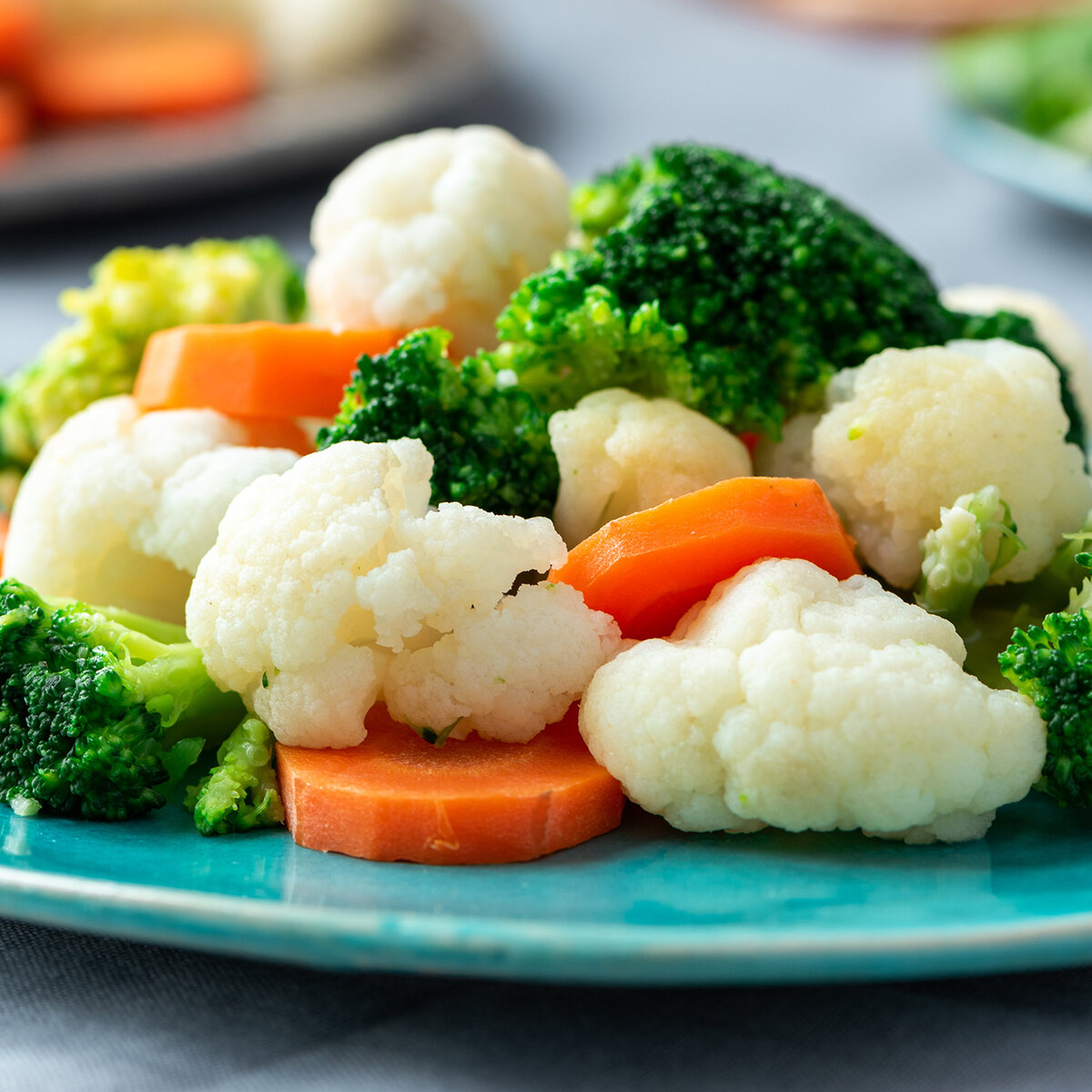 Суперпростое решение — употребление овощей в сыром виде. Это может быть салат с морковью, огурцом и редисом, нарезанными тонкими полосками, которые следует перемешать с листьями салата и заправить восхитной соусом. Например, подсоленной жирной сметаной или классическим «Винегретом» — смесью уксуса и масла.