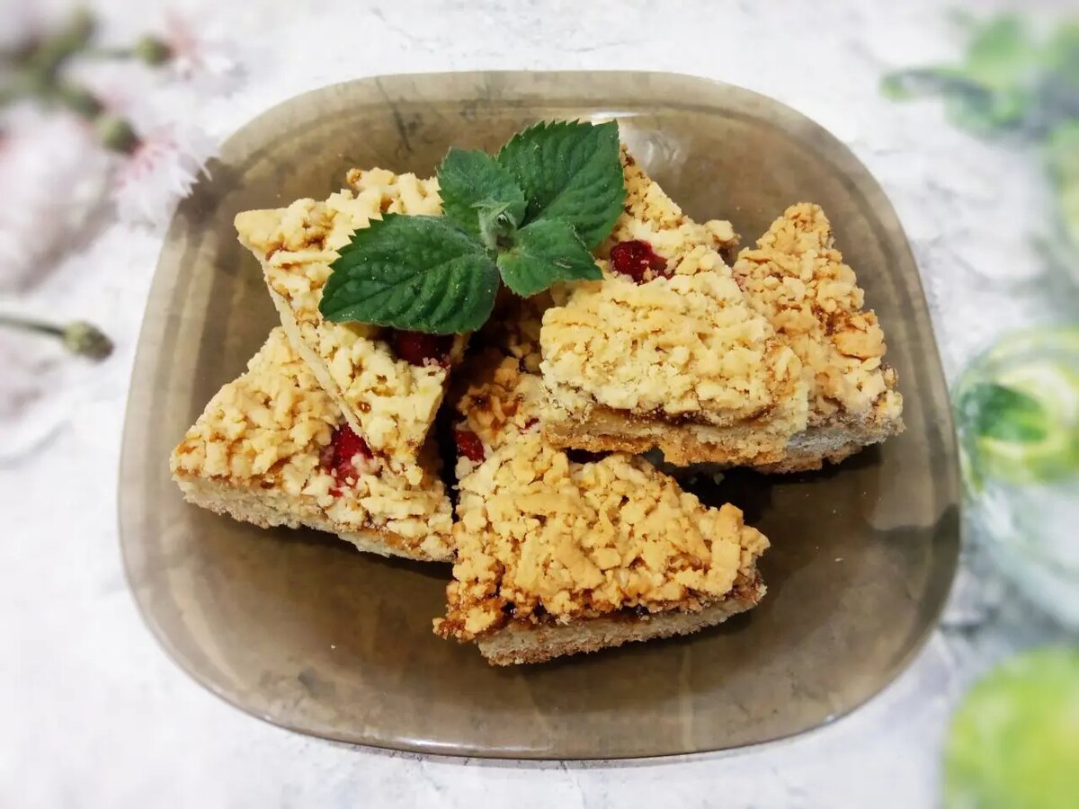 Летний вкус: песочный пирог с вареньем и клубникой