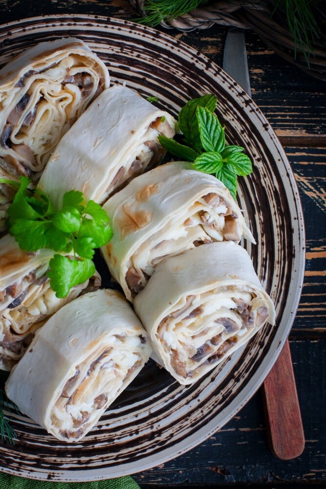 Рулет из лаваша с грибами не только станет отличной закуской для пикника, но и удачным дополнением к основным блюдам. Эта простая, но вкусная закуска украсит любое застолье.