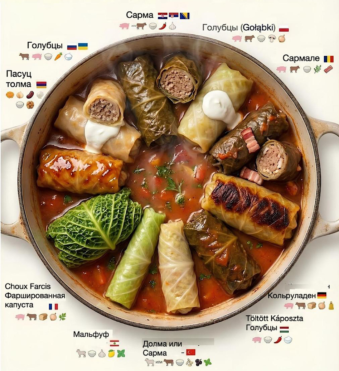 Когда эта традиция добралась до северных широт, где виноград не рос, она адаптировалась, и крестьяне обратились к квашеной капусте. Этот бесценный продукт зимних запасов обеспечивал необходимую мягкость и кислым вкусом, что делало начинку еще более насыщенной.