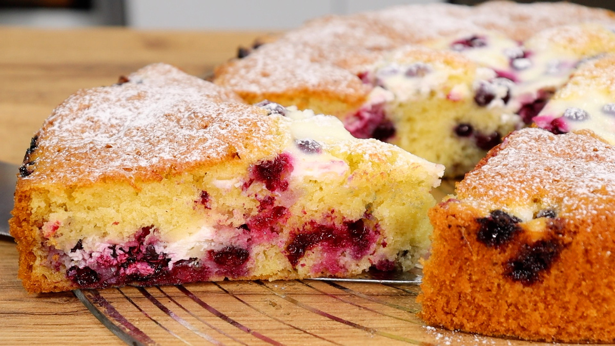 Остудите пирог прямо в форме, а затем аккуратно переложите на тарелку. По желанию, перед подачей можно посыпать его сахарной пудрой. Свежая черная смородина придает изысканную кислинку и делает десерт по-настоящему летним!