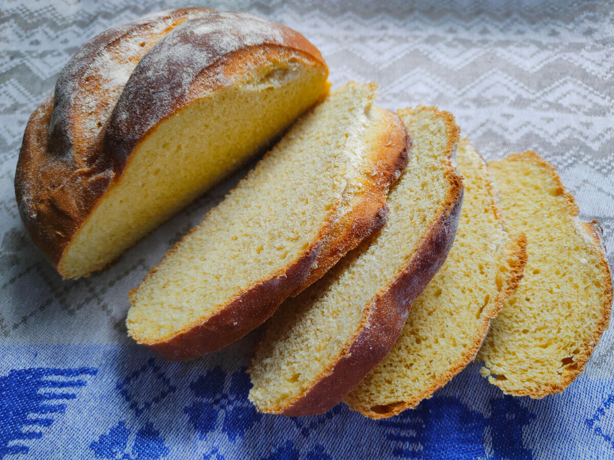 Кукурузная мука придаёт хлебу плотную мякоть с мелкопористой структурой, а также лёгкий желтоватый оттенок и сладковатый привкус.