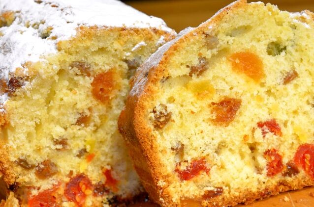 Этот кекс готовится еще быстрее и порадует сладким вкусом благодаря добавлению цукатов и изюма, что делает его идеальным для праздничного стола.