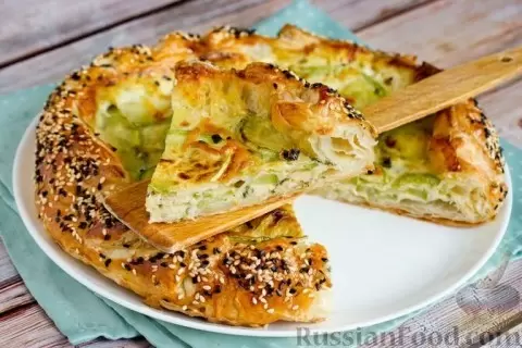 Открытый пирог из слоёного теста с начинкой из кабачков и сыра в яичной заливке станет отличным вариантом для любителей несладкой выпечки. Использование готового теста значительно облегчает процесс приготовления, а тонкая основа и хрустящий бортик с кунжутом порадуют глаз и аппетит.