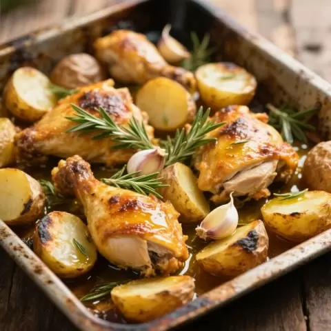 Приходя с работы, кто не мечтает о быстром, но удовлетворительном ужине? Это блюдо станет настоящим спасением. В нем гармонично сочетаются сочная курица и румяная картошка. Просто порежьте, перемешайте и отправьте в духовку — через час наслаждайтесь ароматным домашним ужином.