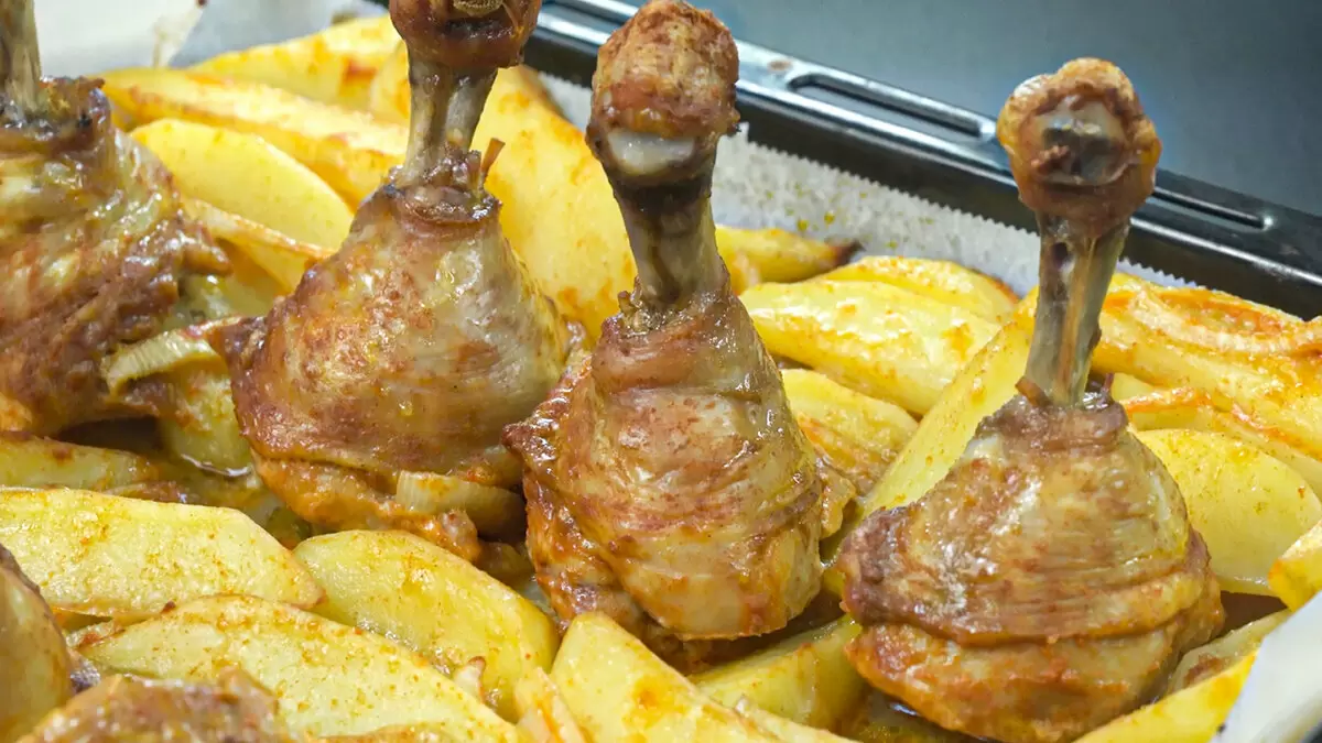 Золотистый картофель и румяные куриные голени - это не просто вкусный ужин, а настоящее кулинарное произведение, способное порадовать всю семью. Этот рецепт гарантированно станет вашей находкой и украсит любой стол. Готовить его легко, а подача — впечатляющая. Он станет отличным выбором даже для праздничного застолья.