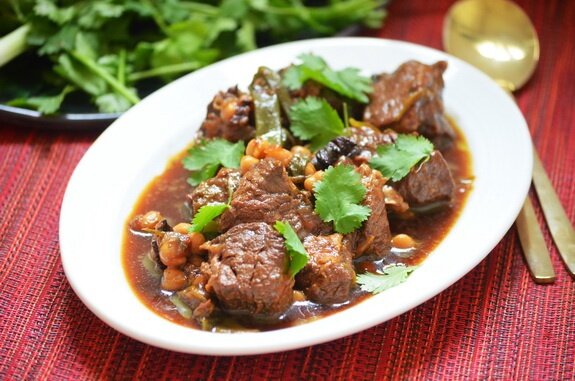 Спустя это время вынуть бадьян и добавить нут. Если жидкости осталось мало, долить немного воды, а затем продолжить тушение еще 30 минут.