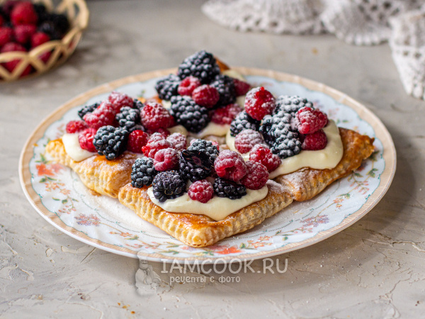 - Пирожные из слоеного теста с нежным заварным кремом и свежими ягодами;