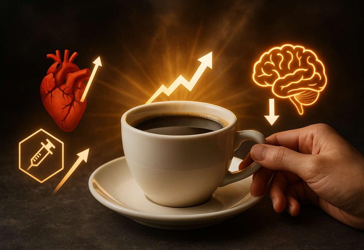 - Улучшает настроение: Регулярное употребление кофе может снизить риск депрессии. Каждая чашка снижает вероятность развития этого состояния на 8% благодаря стимулирующему эффекту на выработку дофамина.