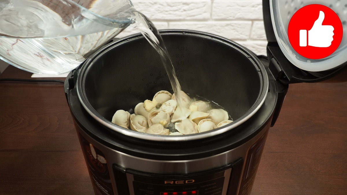 Перед началом готовки нужно достать пельмени из морозильника за 5-10 минут до работы, чтобы они немного подраспустились. В чашу мультиварки выкладываются пельмени, добавляется соль, сливочное масло, и все это заливается горячей водой. Затем стоит аккуратно перемешать содержимое.