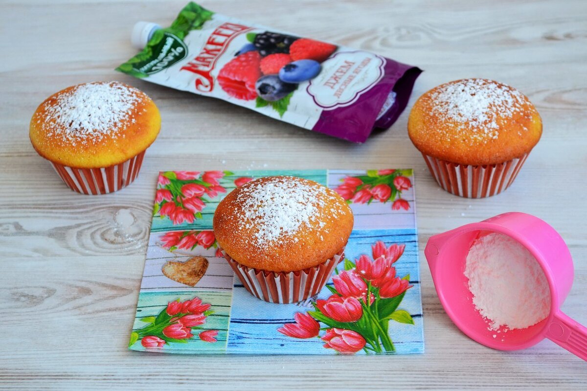 Приготовленное тесто должно иметь среднюю густоту. Формочки для выпечки прокладываются бумажными вкладышами. Тесто нужно налить в формы, добавив заранее приготовленный джем, а затем снова прикрыть тестом.
