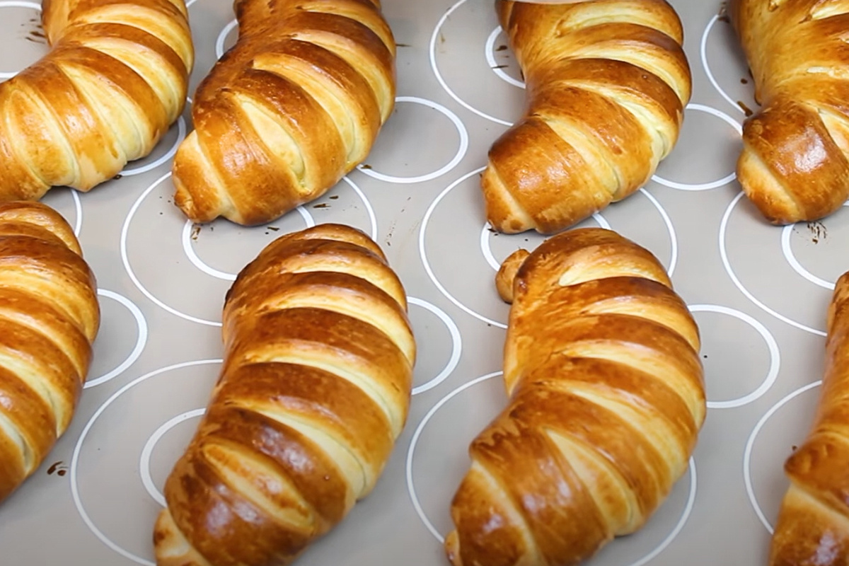 Булочки выкладываются на противень, предварительно застеленный пергаментом, на небольшом расстоянии друг от друга. Накрывают и оставляют на 30 минут. Перед выпечкой желток смешивают с молоком и смазывают поверхность изделия. Выпекают в заранее разогретой духовке при 180 градусах около 20–25 минут до золотистой корочки.