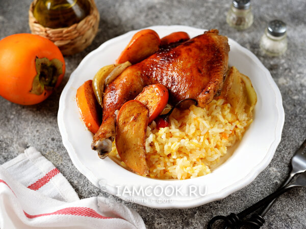 Вкусная курица с хурмой в духовке