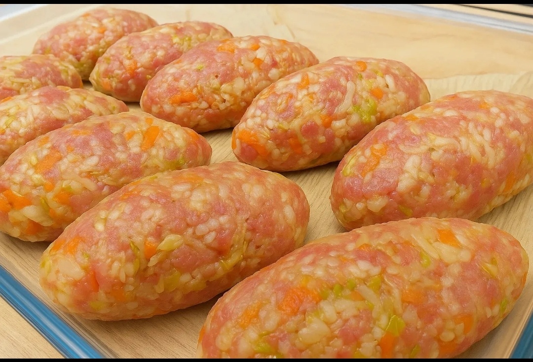 Шаг 5: В смесь добавьте охлаждённые овощи и рис, тщательно перемешайте. Фарш должен быть сочным и ароматным.