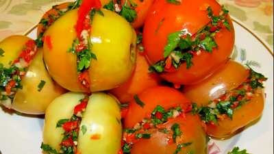 Некоторые помидоры необходимо разрезать, оставляя при этом целостность — это важно для последующего фарширования. Каждый помидор наполняется начинкой до полного насыщения. Несмотря на свою простоту, процесс требует внимания и аккуратности. Но поверьте, аромат и вкус этого угощения того стоят!