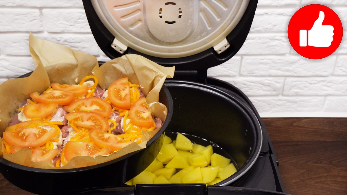 В чашу мультиварки положить нарезанный картофель, залить холодной водой и добавить соль. На подготовленный слой из курицы сверху устанавливается корзина для пароварки. Регулировать режим на «Пар/Варка на пару» и готовить в течение 40 минут. Готовое блюдо щедро посыпать тертым сыром для насыщенного вкуса.