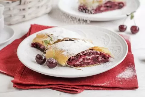 Заметно, как простые продукты могут превратиться в уютный десерт, который можно приготовить почти в любую минуту — и результат окажется вкуснее, чем кажется на первый взгляд. Простой рулет из теста фило и ароматной начинки из вишни напоминает о маленьких радостях вечера и лёгких домашнем ритуале: разложить слои, добавить жидкость и выпечь до золотистой корочки.