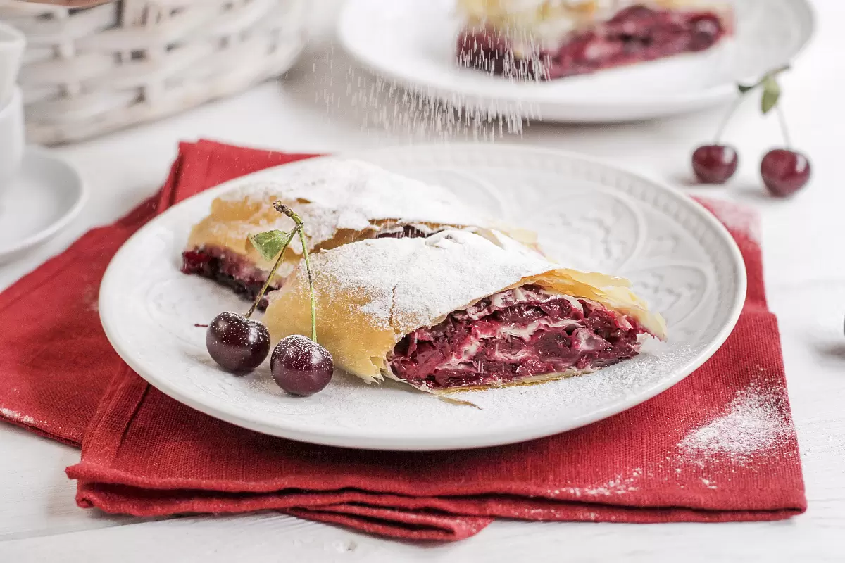 Основа и подготовка. Начинают с базовой подложки: подготовить ингредиенты так, чтобы они готовы к работе. Вишню слегка обсушить, чтобы лишний сок не размягчил тесто, и удобнее смешать её с сахаром и крахмалом прямо перед сборкой. Масло потребуется для смягчения слоёв фило и добавления хруста. Всё это создаёт эффект тёплого, домашнего десерта без лишних хлопот.