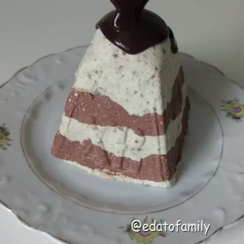 Затем подготовьте пасочницу, предварительно застелив ее марлей. Сформируйте слои творожной массы, чередуя шоколадную и халвовую, и установите сверху груз для прессования. Оставьте десерт в холодильнике на 10 часов — так он станет плотнее, а сыворотки выделится минимально, если использовались высокожирные продукты.