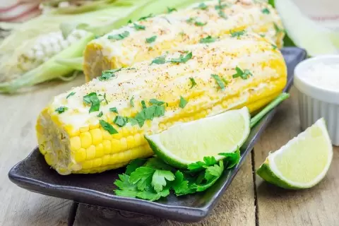 Отварную кукурузу можно нарезать на кусочки и обжарить на гриле для получения характерного рисунка. Это блюдо прекрасно дополнит мясные или рыбные угощения. Для особого вкуса рекомендуем добавить лаймовое масло: просто смешайте размягченное сливочное масло, сок и цедру лайма, а также немного молотого перца для пикантности.