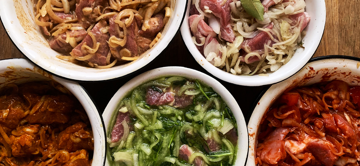 - Маринад с уксусом и зирой — великолепен для баранины и говядины. Смешайте 2 ст. ложки уксуса с 100 мл воды, добавьте нарезанный лук и зиру. Оставьте мясо на 40 минут, перемешивая каждый 10 минут.