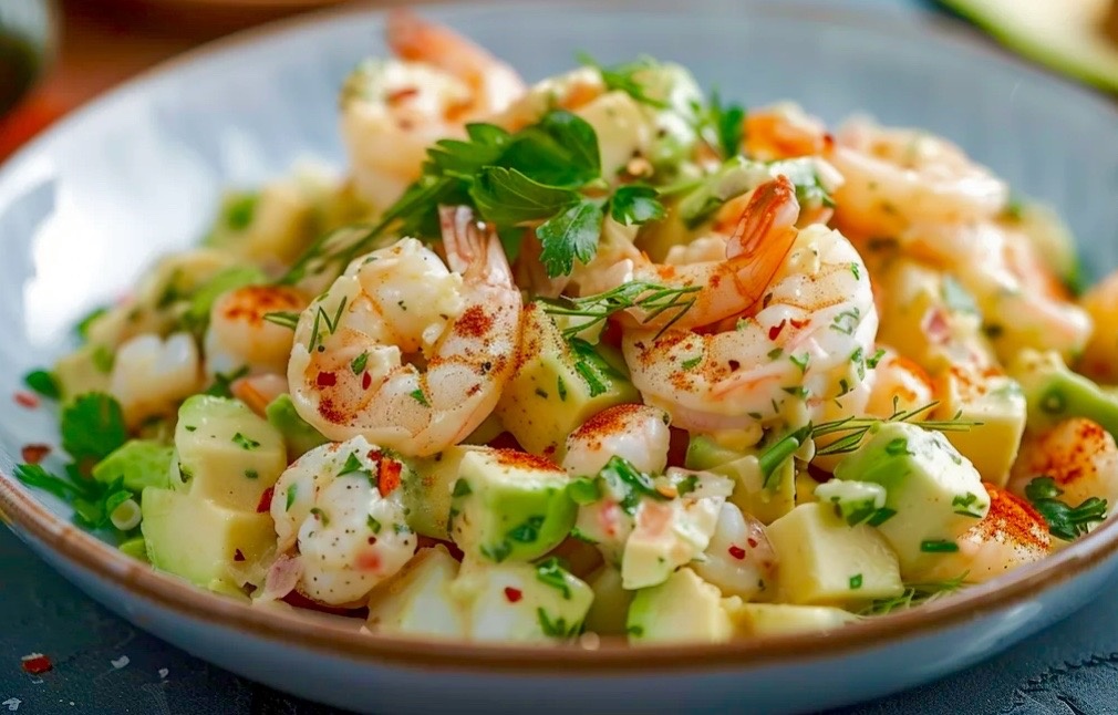 - Итальянский салат с креветками, картофелем и сливочным сыром