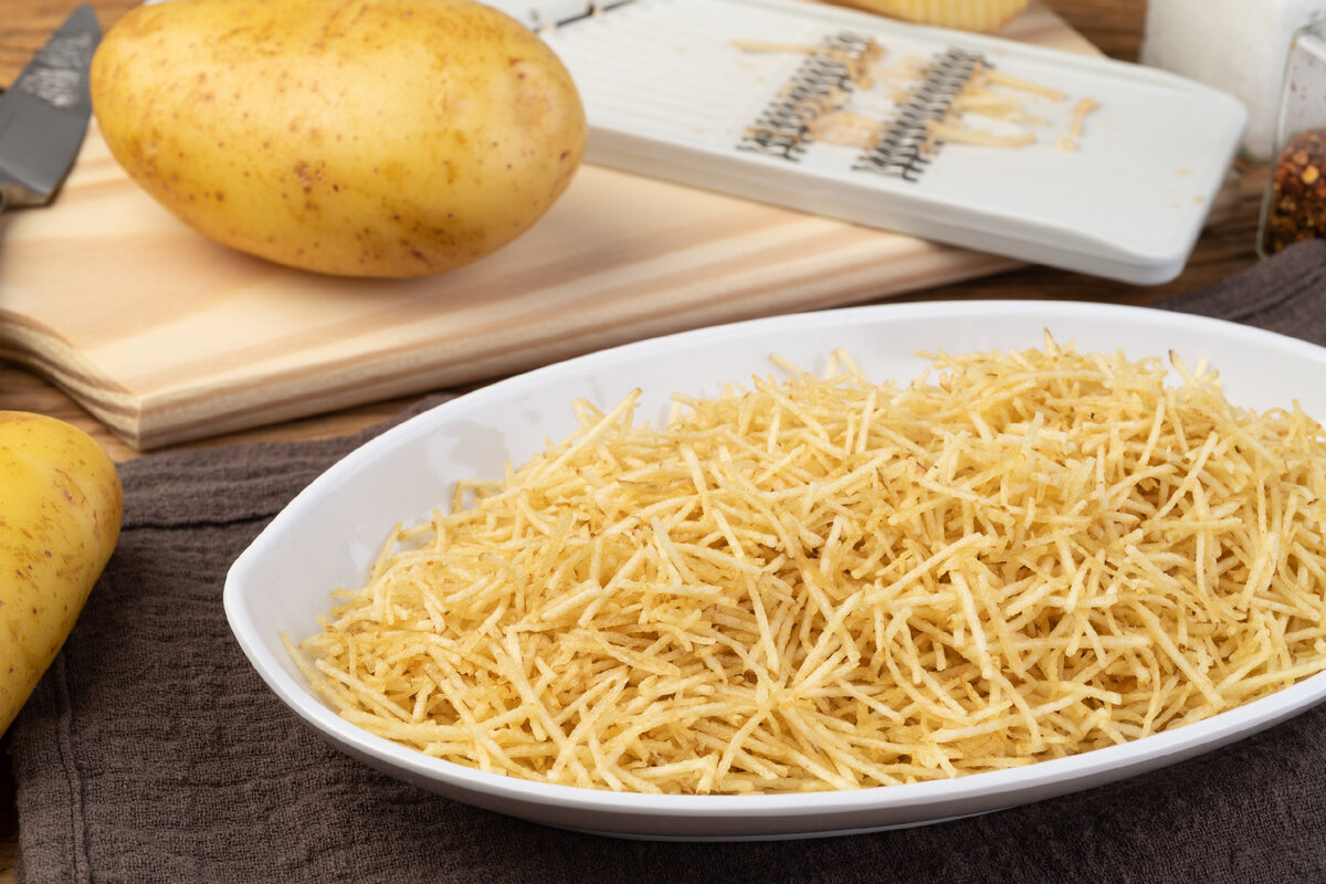 Опытные домохозяйки признаются: секретов в приготовлении картофельного паю нет. Ключевой момент — это нарезка овощей. Для этого лучше всего подойдет терка для корейской моркови или острый нож. Молодые корнеплоды с низким содержанием крахмала идеально подходят для этого блюда, так как картофель с высоким содержанием крахмала не даст ожидаемого хруста. Чтобы улучшить текстуру, нарезанные кубики можно промыть под холодной водой, а затем просушить бумажным полотенцем.