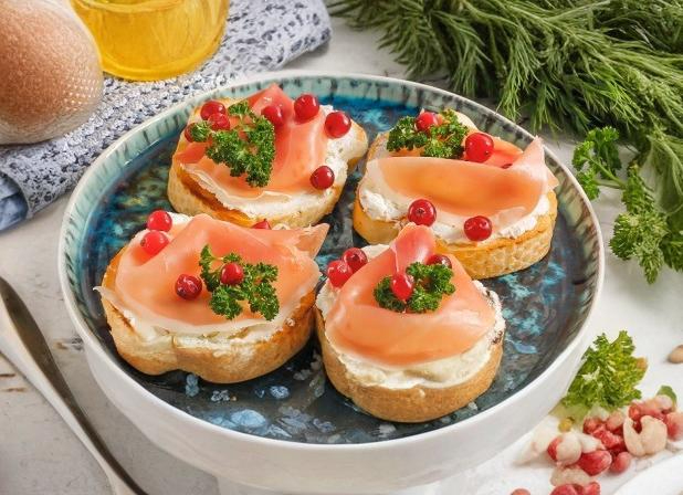 Подавайте брускетты с беконом и творожным сыром в сопровождении ваших любимых напитков.
