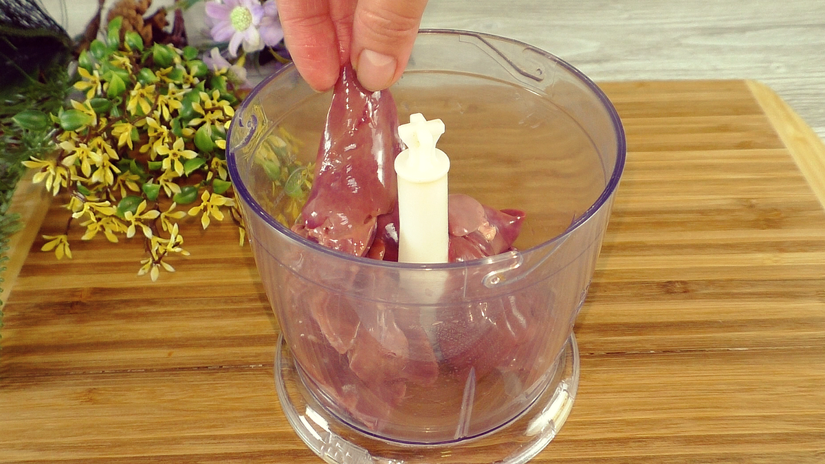 Для начала печёнку необходимо тщательно промыть, обсушить бумажными полотенцами и удалить все ненужные части. Затем печёнку помещают в чашу блендера, и при необходимости можно измельчать её в несколько подходов.